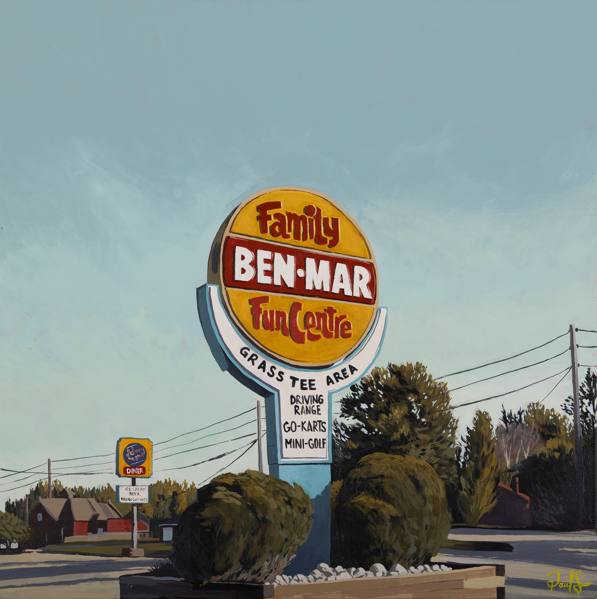 An on-going series of paintings and photographs documenting roadside signage mostly located in Ontario. Beyond their inherent iconography and sculptural qualities, they also contribute to an ever changing ‘identity of place’. As our public spaces become more ubiquitous, I’m striving to preserve the signs themselves and how they inform the landscape.