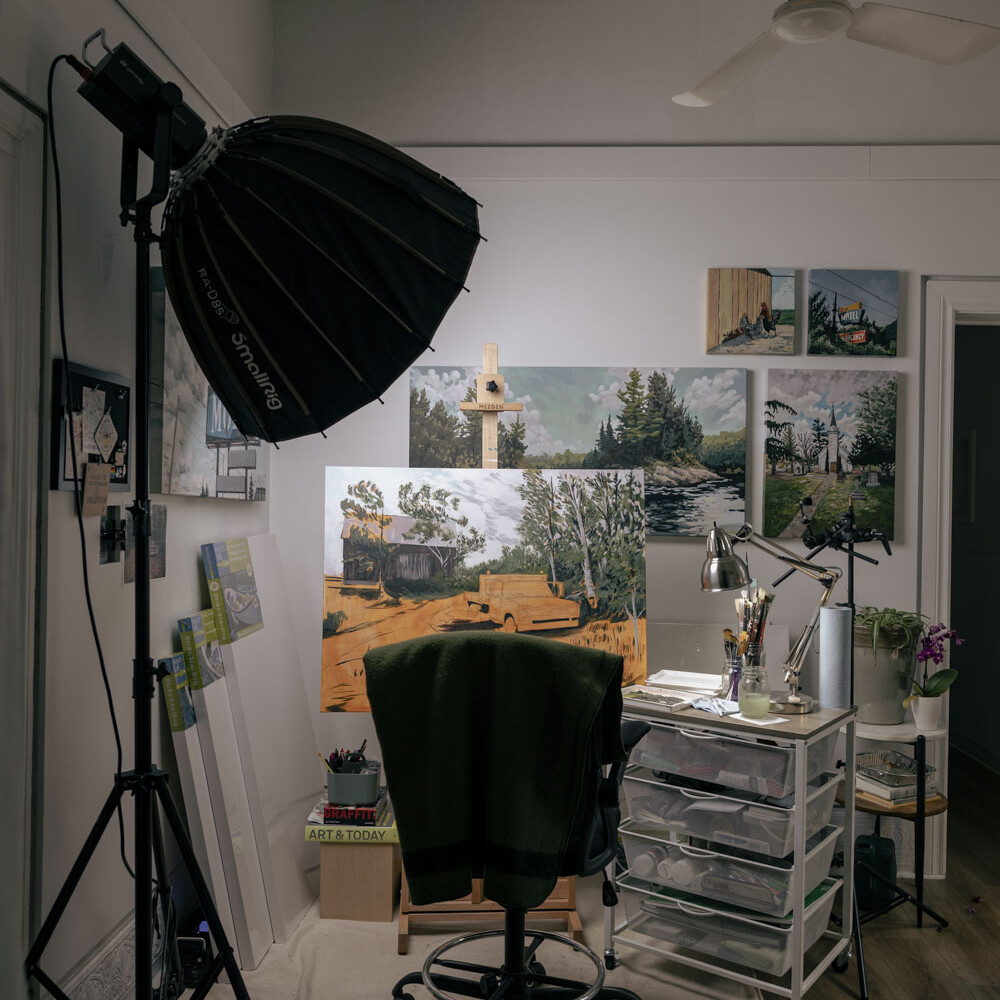 My name is Paul Smith and I’m a visual artist living in Brantford, Ontario. I have been a professional photographer for most of my working life after graduating from Sheridan College with a Diploma in Applied Photography. I’ve always used painting and illustration as a personal creative outlet, and in 2024 began the journey of producing work in a more structured and meaningful way. I was also given the distinct privilege to participate in Glenhyrst Art Galleries’ incubator program, an 8 month artist residency.